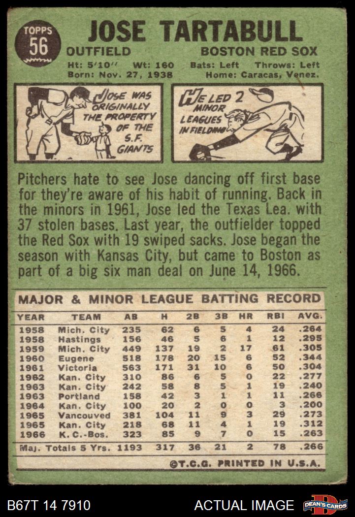 1967 Topps #56 Jose Tartabull 1 - POOR