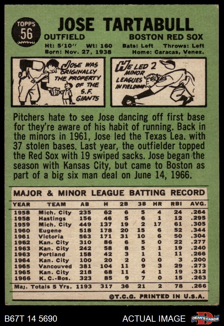 1967 Topps #56 Jose Tartabull 4 - VG/EX