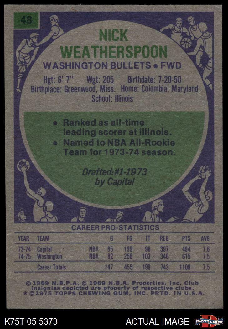 1975 Topps #48 Nick Weatherspoon 6 - EX/MT