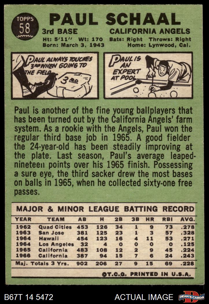1967 Topps #58 GRN Paul Schaal 4 - VG/EX