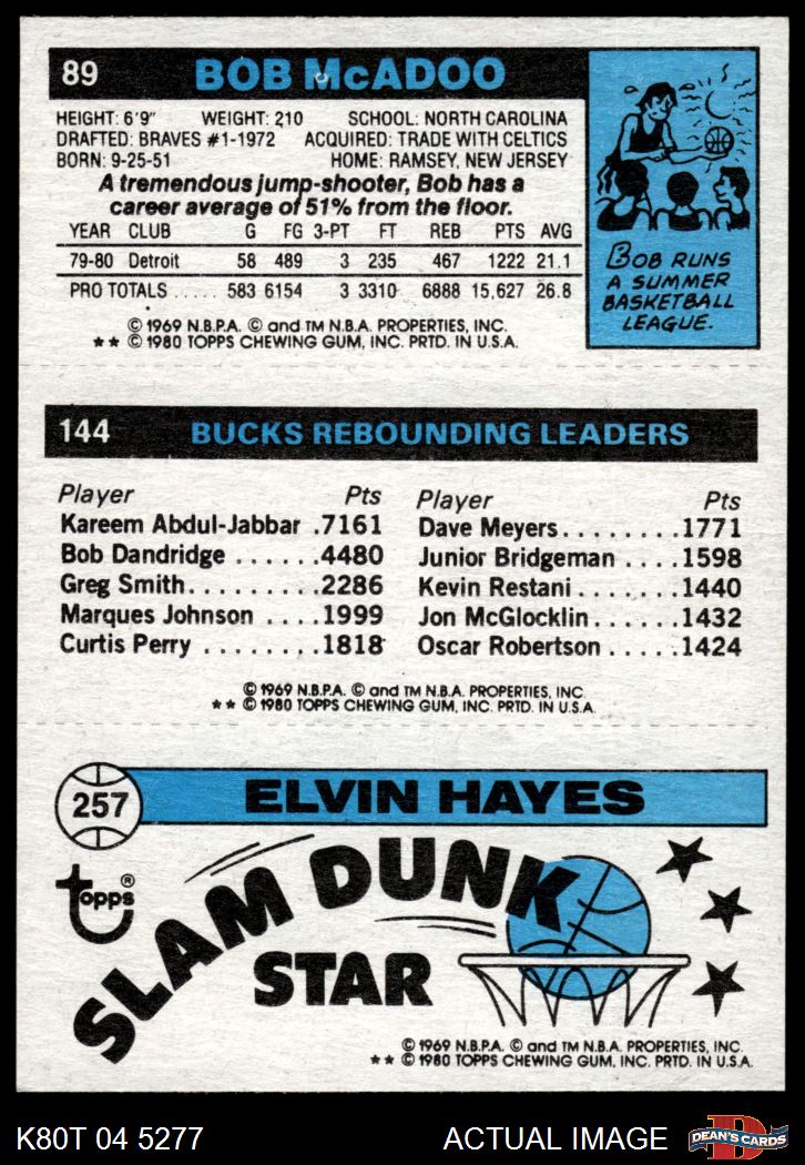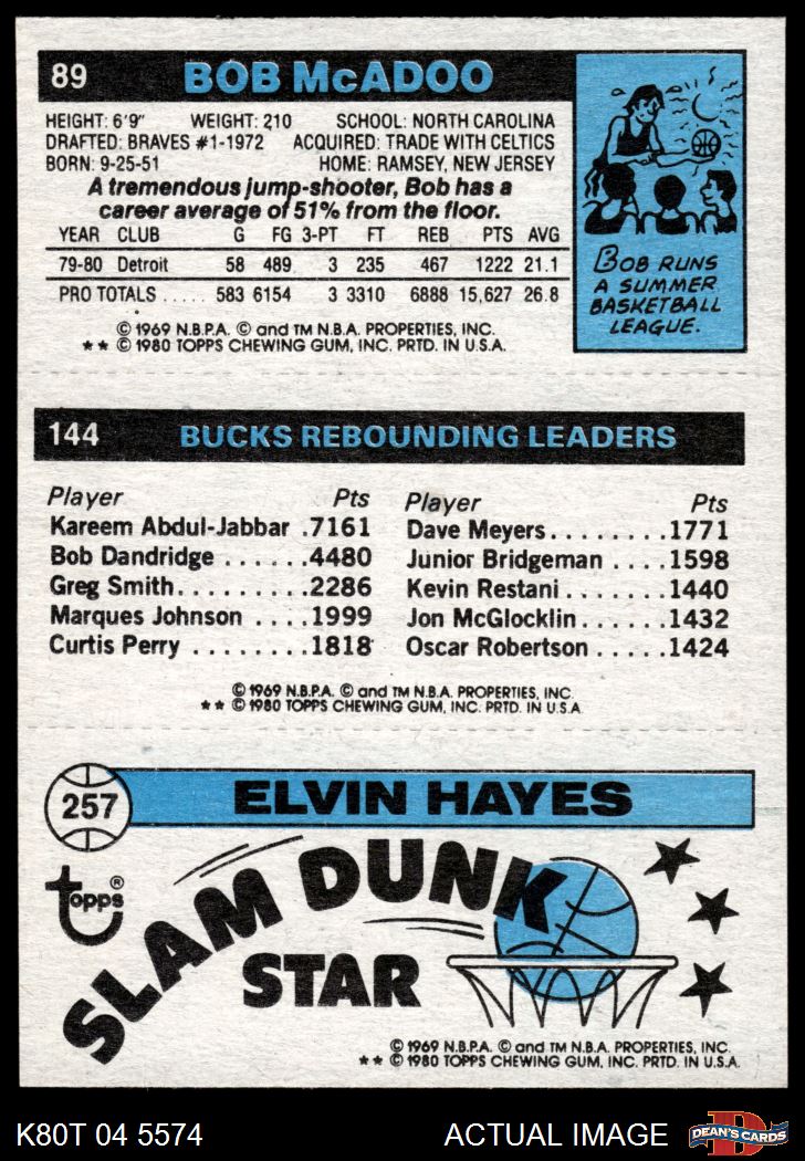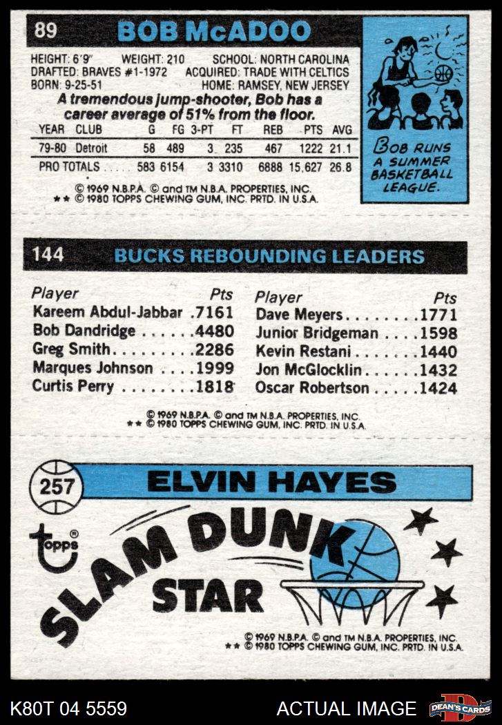 1980 Topps - Elvin Hayes / Marques Johnson / Bob McAdoo 257 / 144 / 89 8 - NM/MT