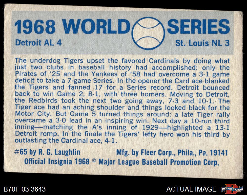 1970 Fleer World Series #65 1968 Tigers vs. Cardinals 2 - GOOD