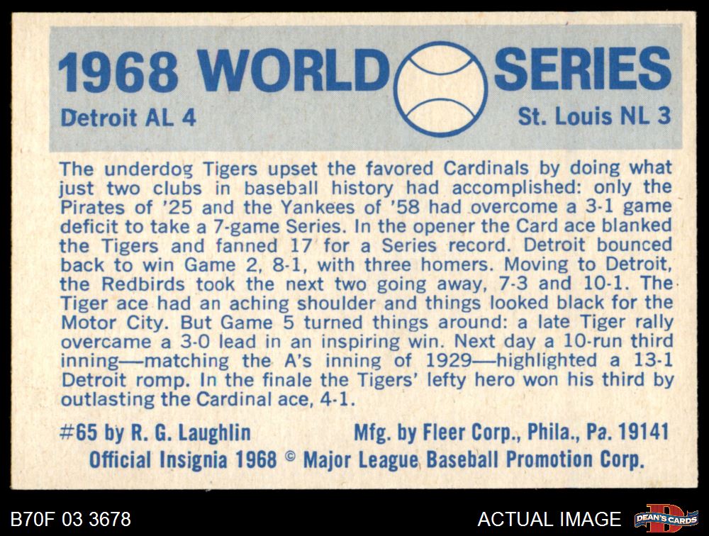 1970 Fleer World Series #65 1968 Tigers vs. Cardinals 5 - EX