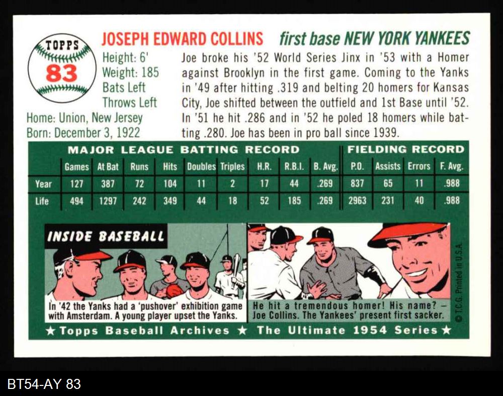 1954 Topps Archives #83 Joe Collins 8 - NM/MT