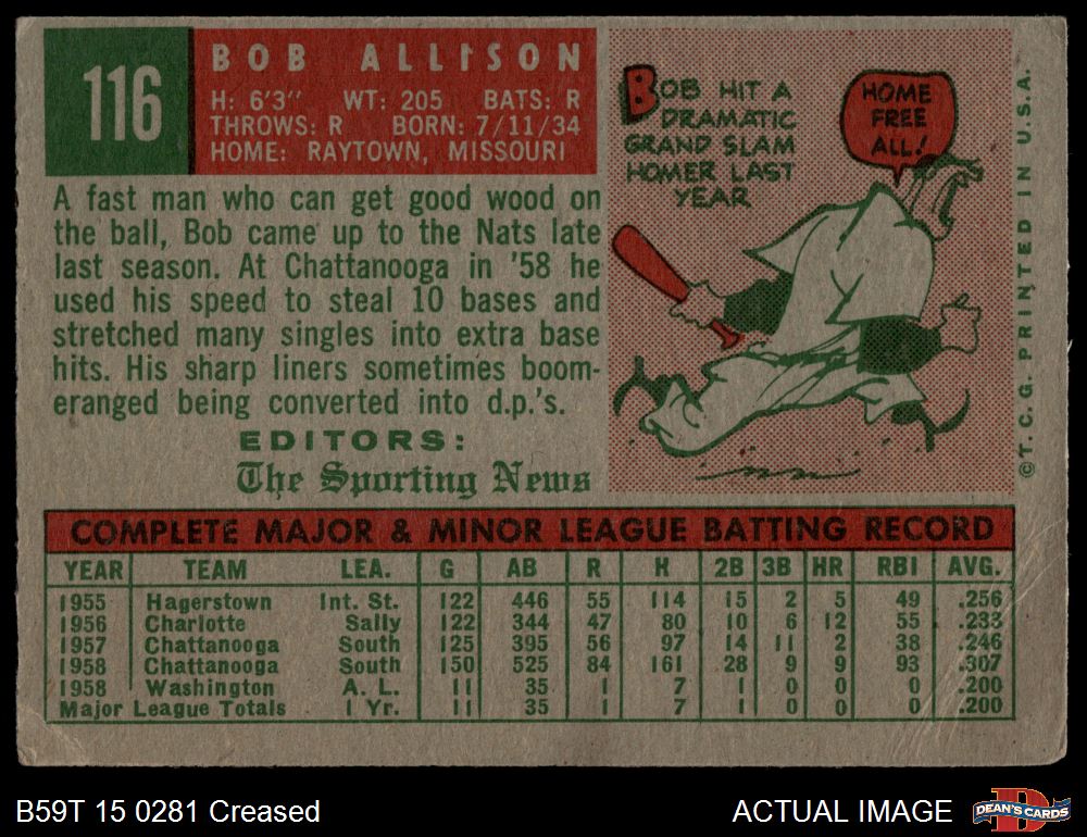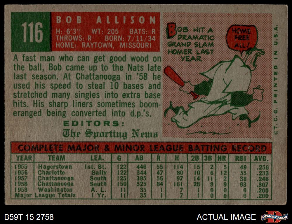 1959 Topps #116 Bob Allison 2 - GOOD