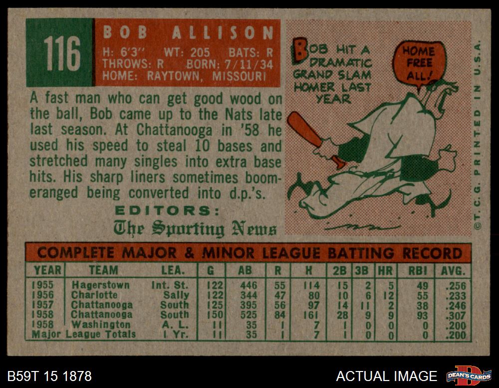 1959 Topps #116 Bob Allison 7 - NM