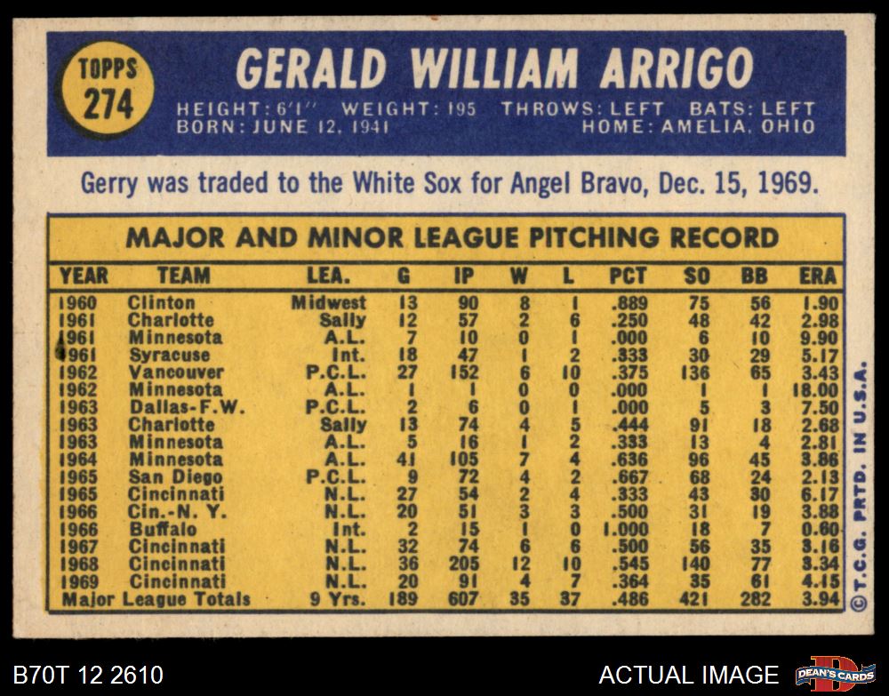 1970 Topps #274 Gerry Arrigo 7.5 - NM+