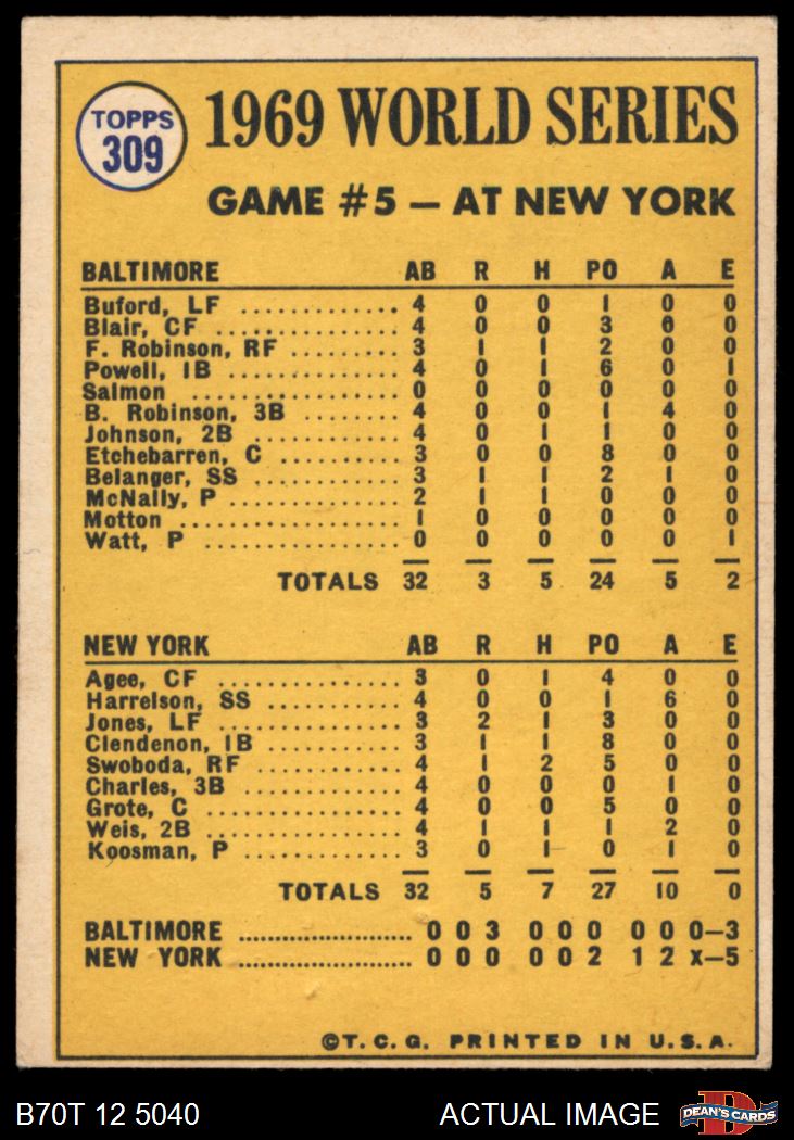 1970 Topps #309 - Jerry Koosman 1969 World Series - Game #5 - Koosman Shuts the Door 4 - VG/EX
