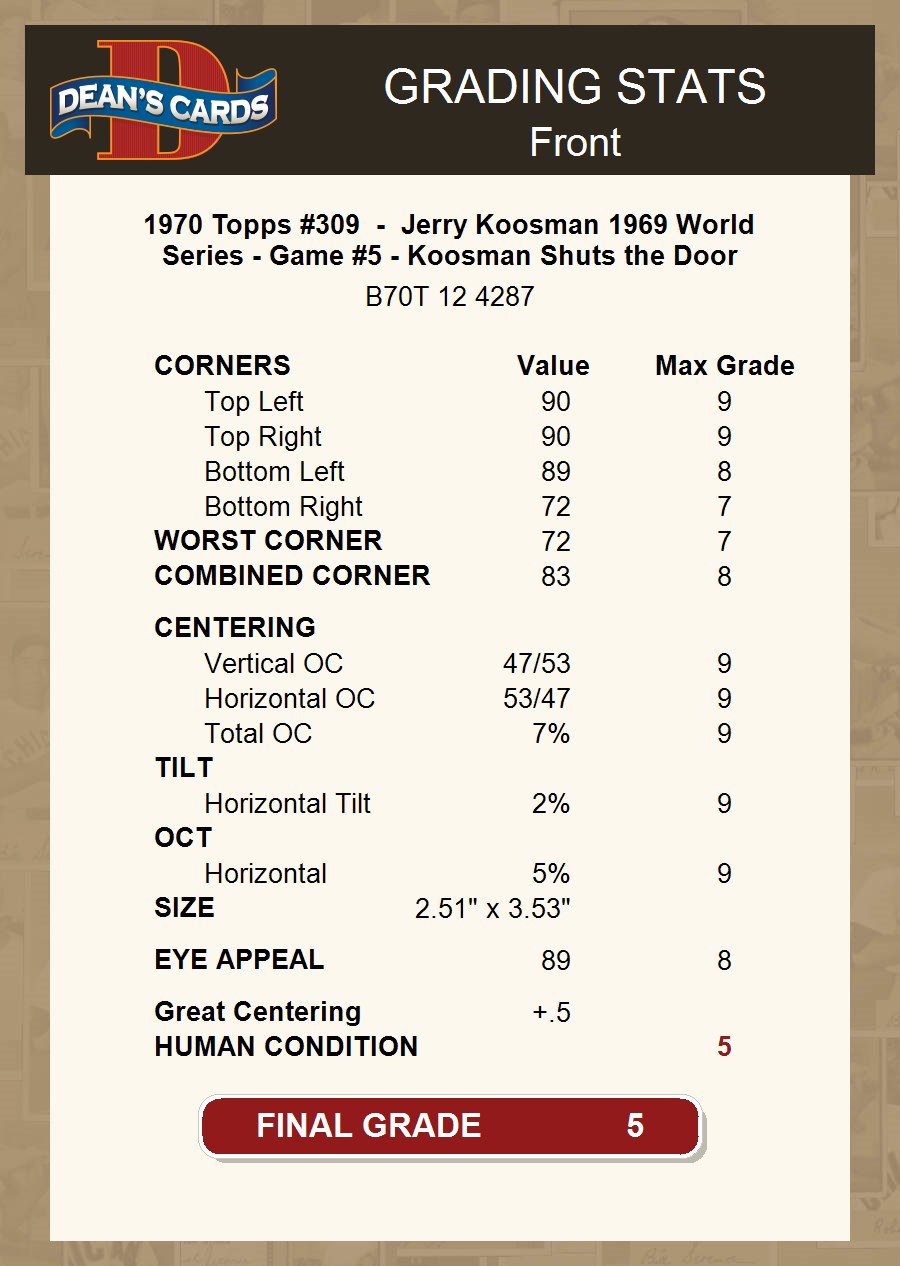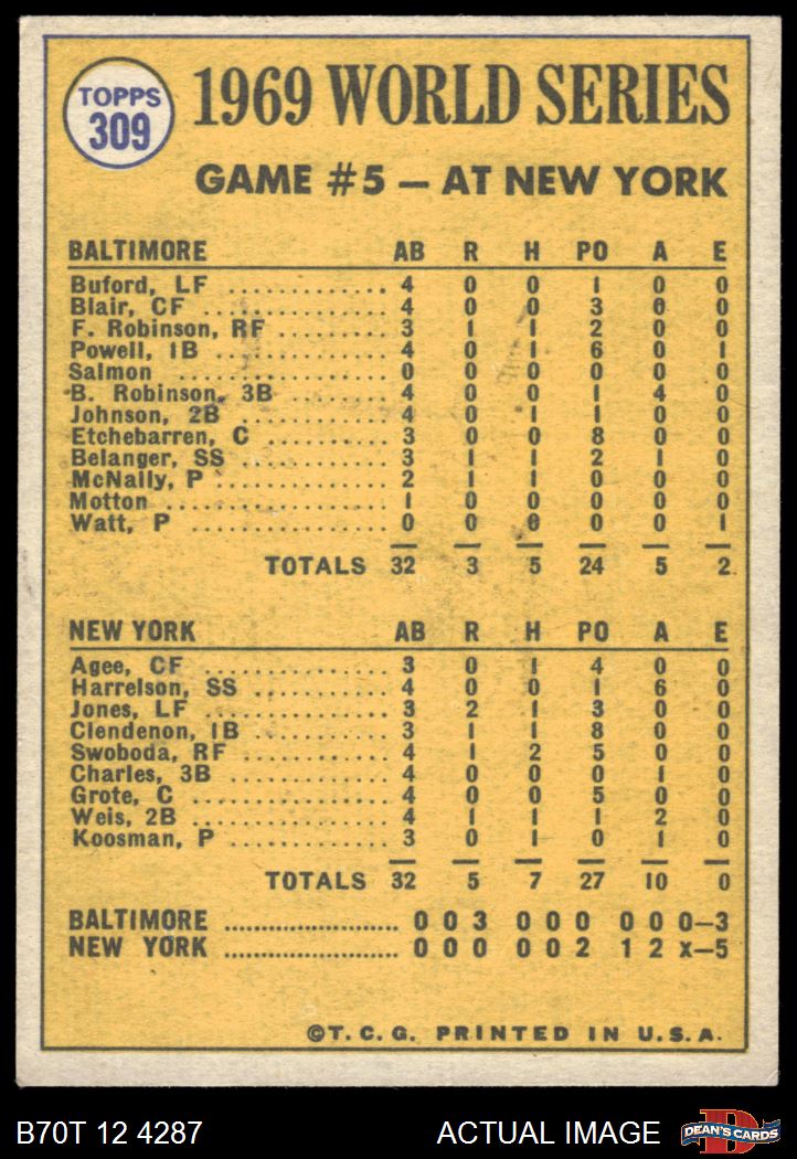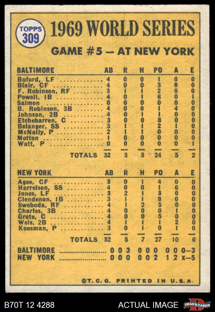 1970 Topps #309 - Jerry Koosman 1969 World Series - Game #5 - Koosman Shuts the Door 5 - EX