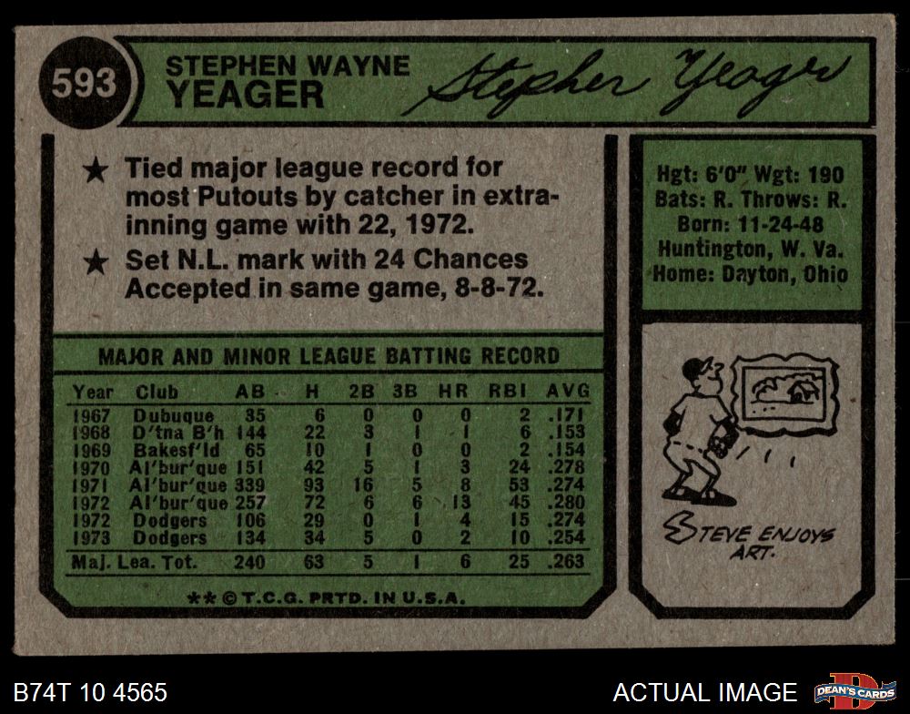 1974 Topps #593 Steve Yeager