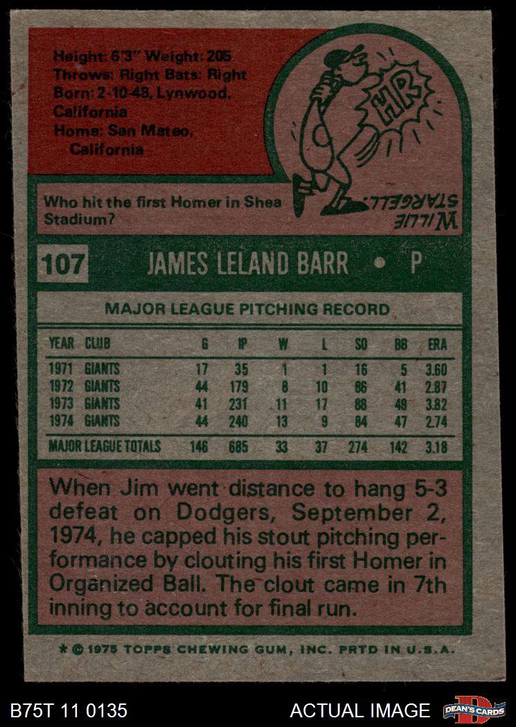 1975 Topps #107 Jim Barr 4 - VG/EX