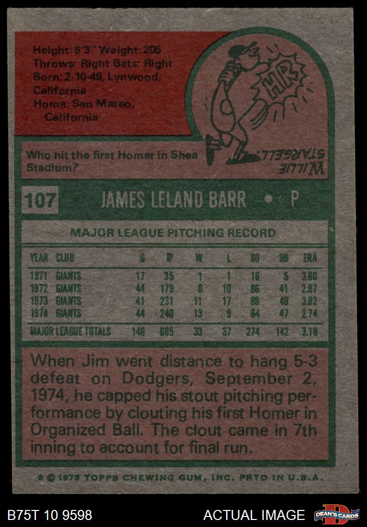 1975 Topps #107 Jim Barr 6.5 - EX/MT+
