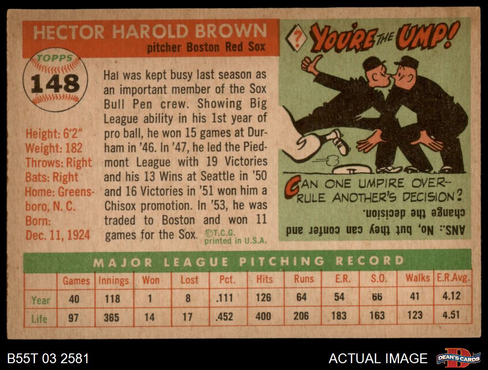1955 Topps #148 Hal Brown 3 - VG