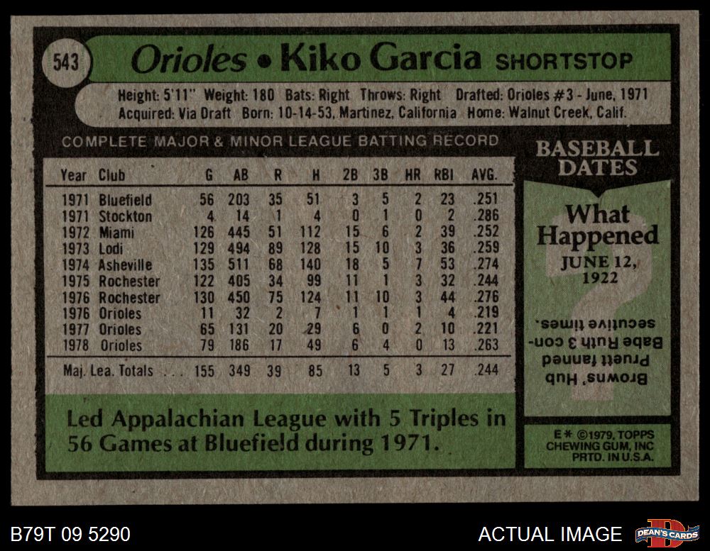 1979 Topps #543 Kiko Garcia 7 - NM