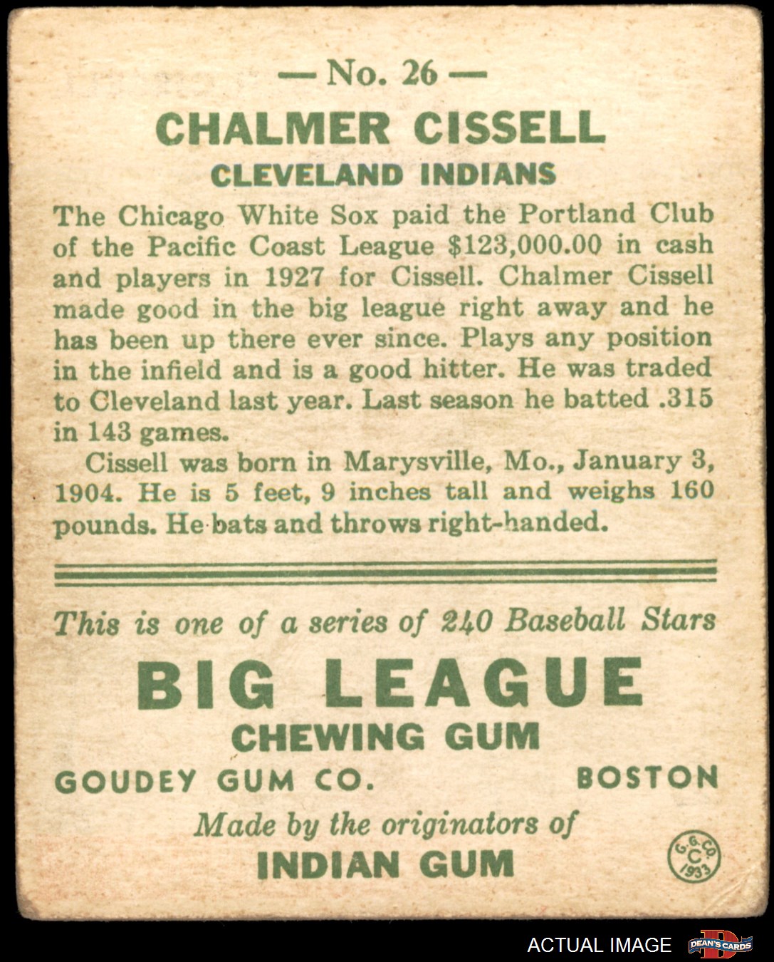 1933 Goudey #26 Chalmer Cissell