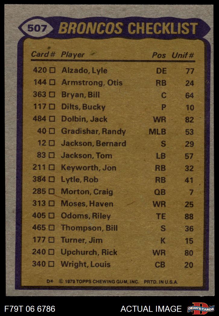 1979 Topps #507 - Lonnie Perrin / Riley Odoms / Steve Foley / Lyle Alzado / Bernard Jackson Broncos Team Leaders & Checklist 5 - EX