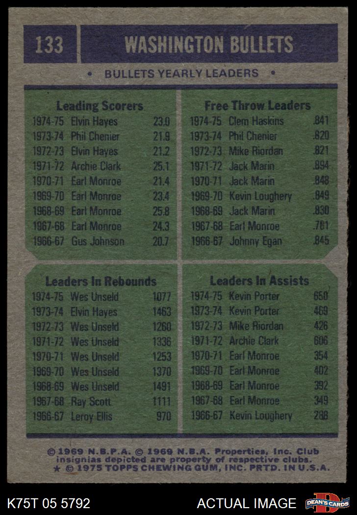 1975-76 Topps Basketball Cards (3,067 available)1975 Topps Bullets (Wizards) (185 available)