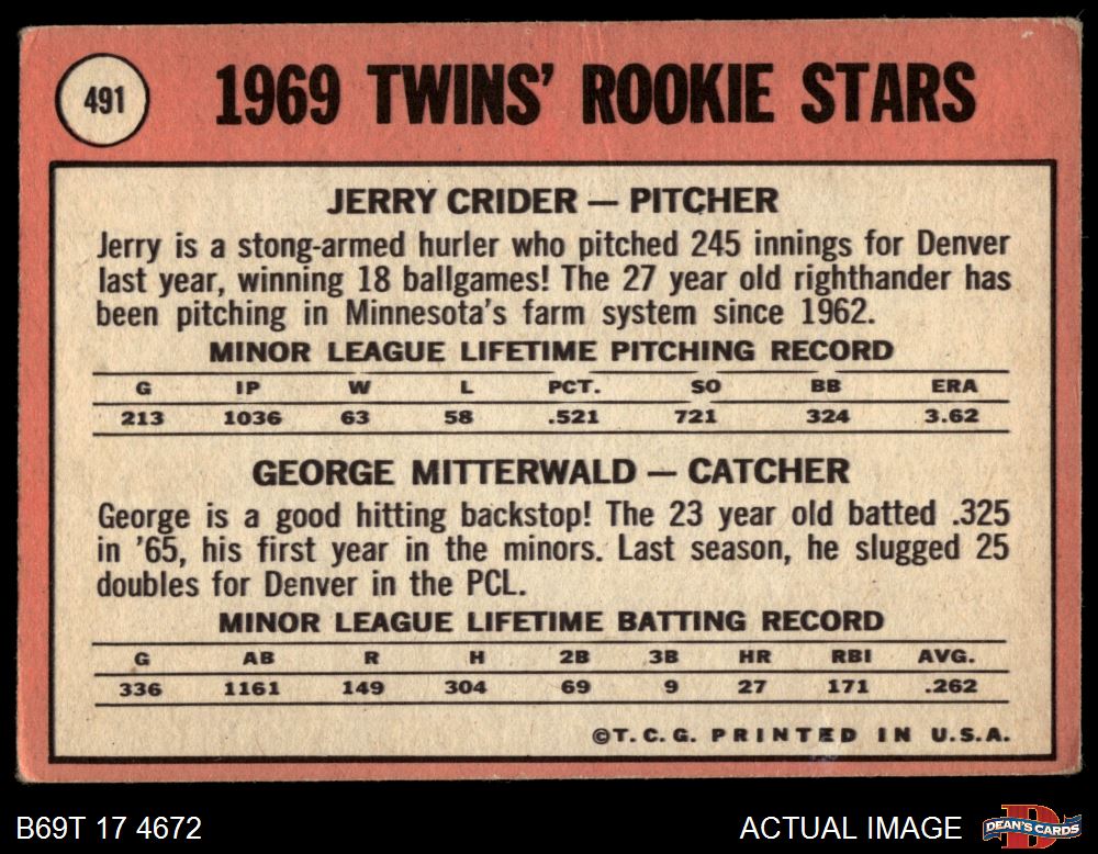 1969 Topps #491 YN - George Mitterwald / Jerry Crider Twins Rookies 2 - GOOD