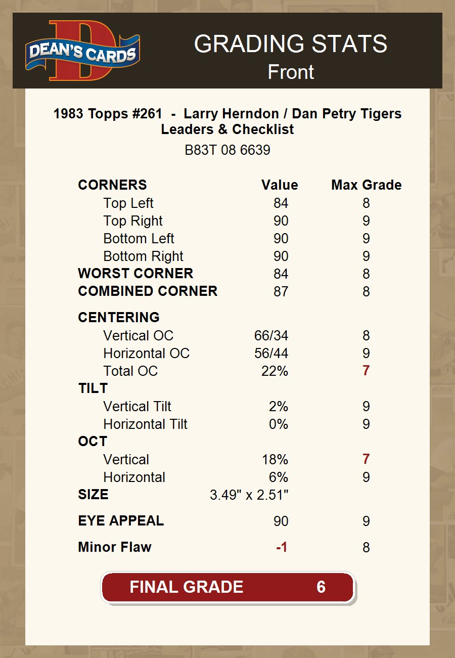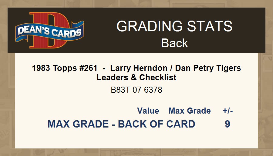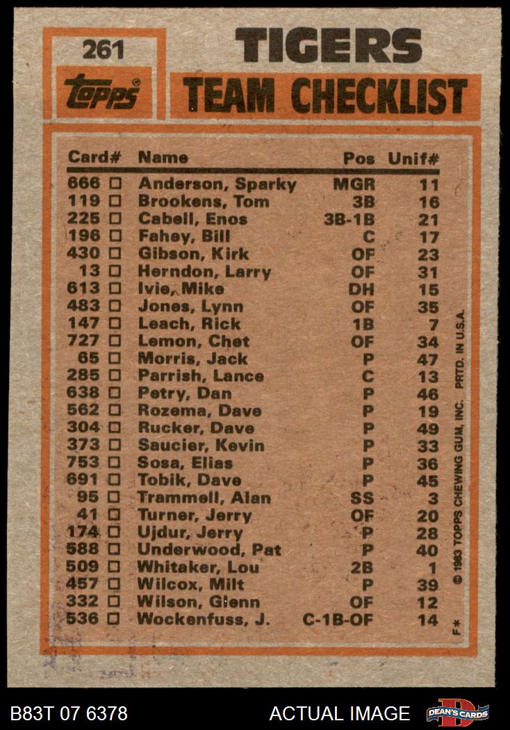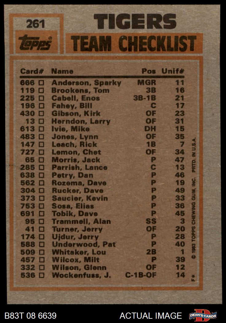 1983 Topps #261 - Larry Herndon / Dan Petry Tigers Leaders & Checklist 6 - EX/MT