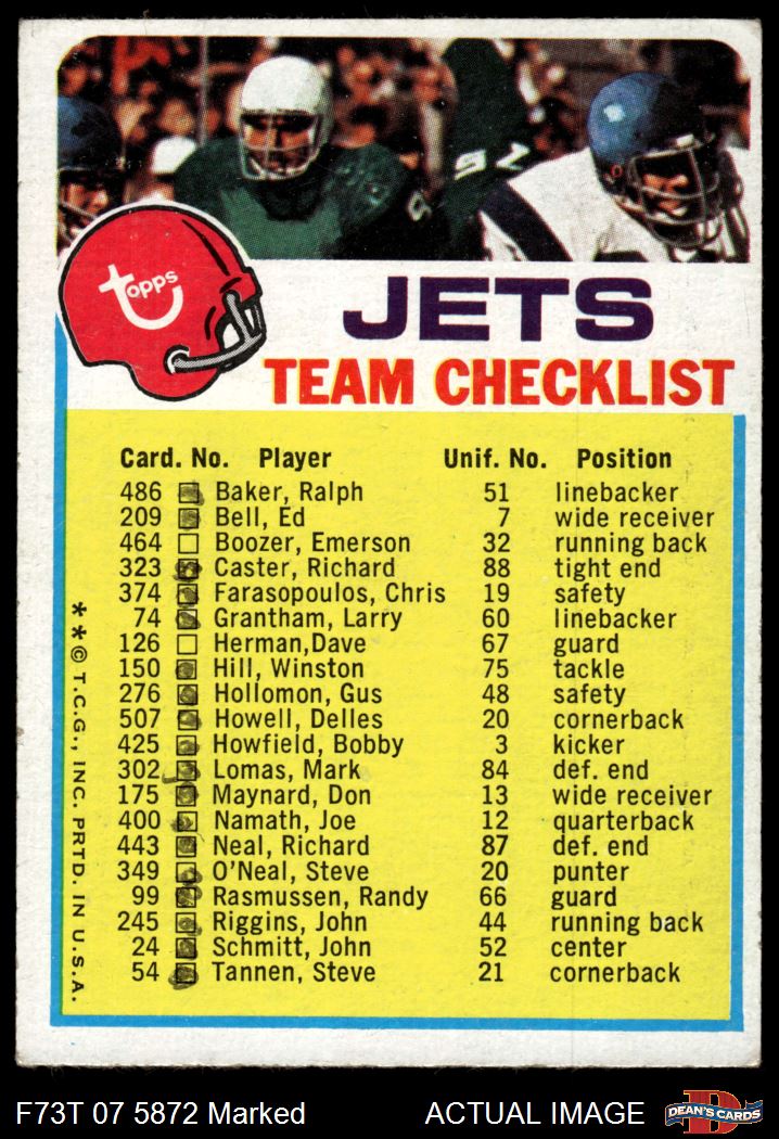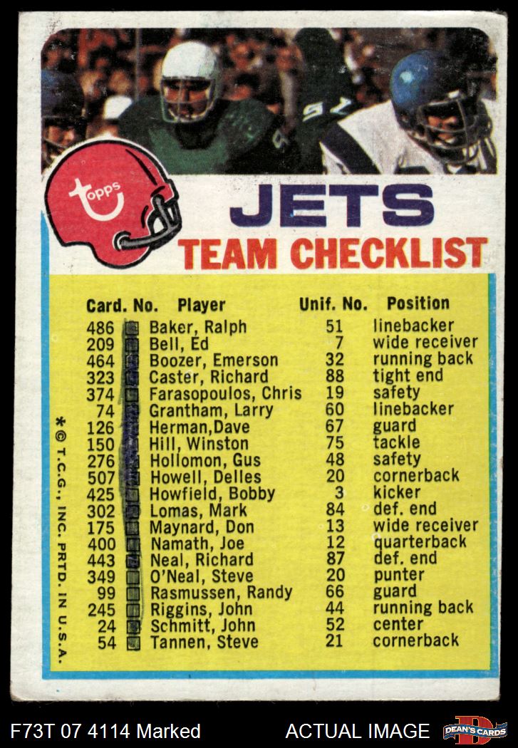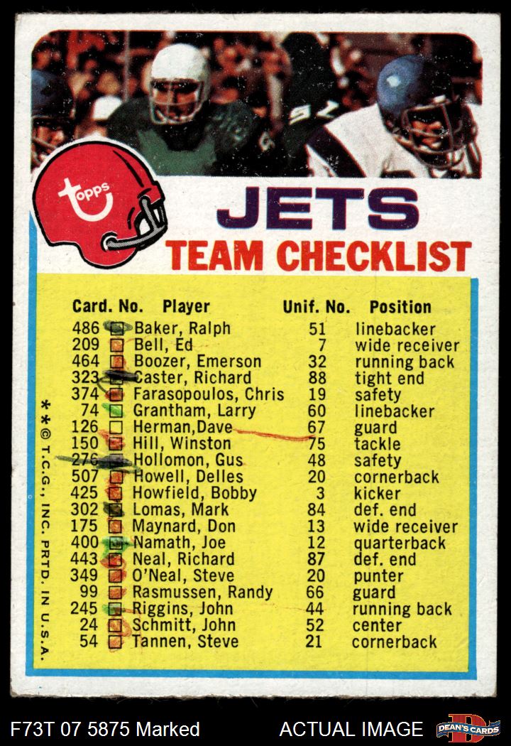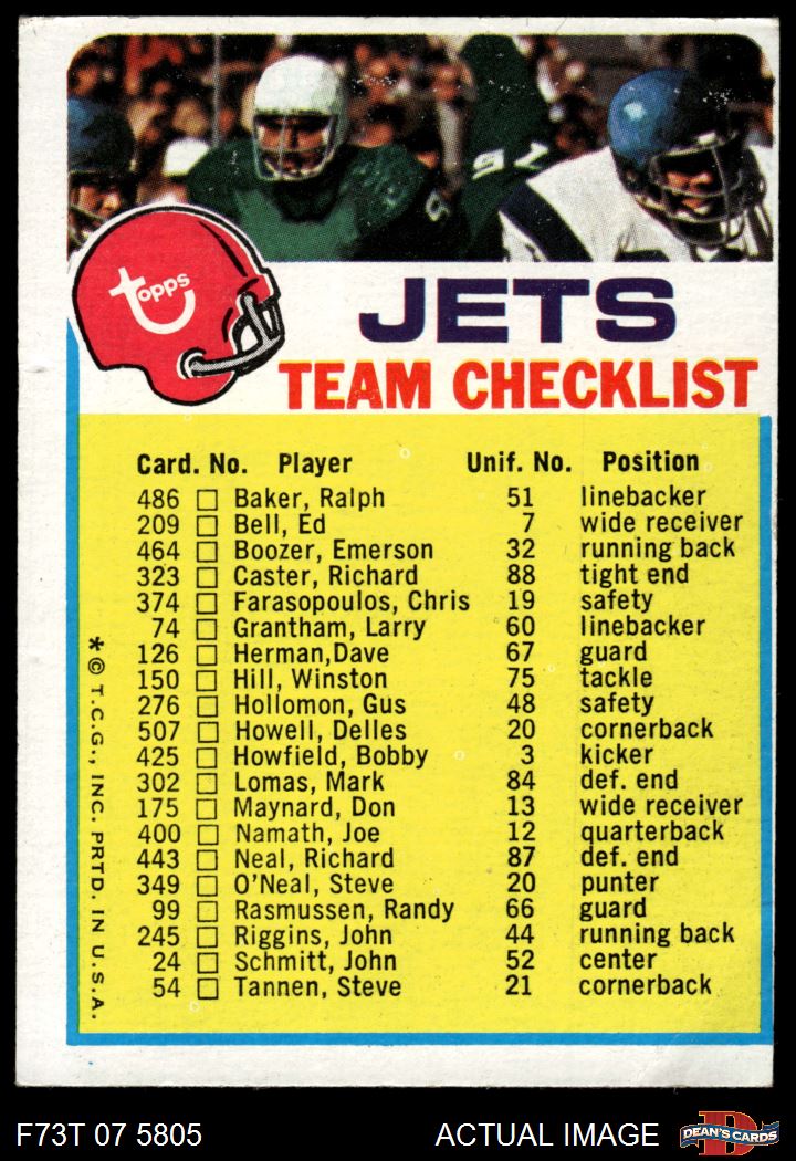 1973 Topps Football Cards (11,995 available)1973 Topps Checklist Jets (13 available)
