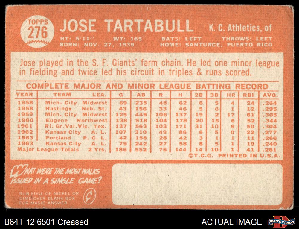 1964 Topps #276 Jose Tartabull 2 - GOOD