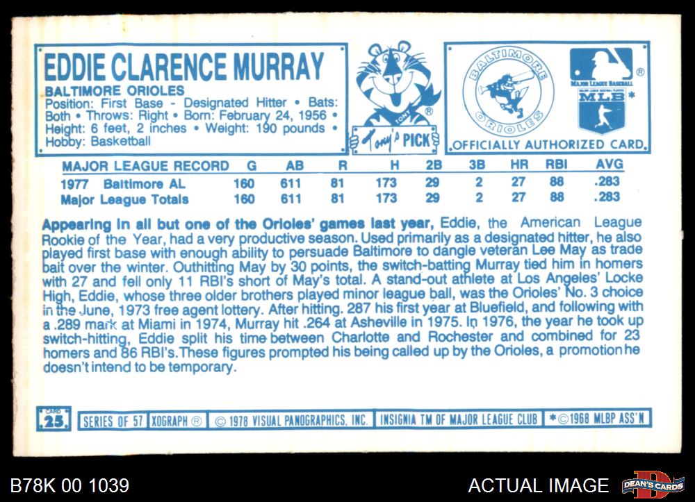 1978 Kellogg's #25 Eddie Murray 7 - NM