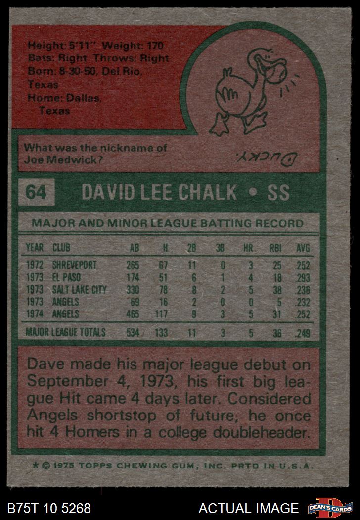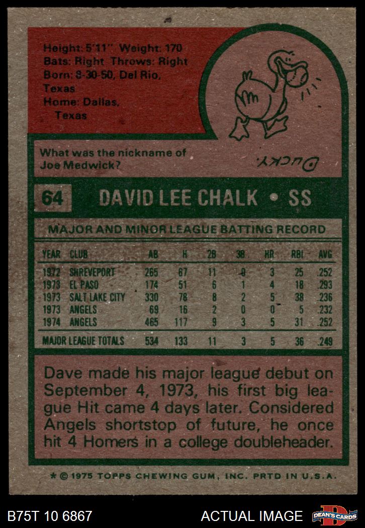 1975 Topps #64 Dave Chalk 6 - EX/MT