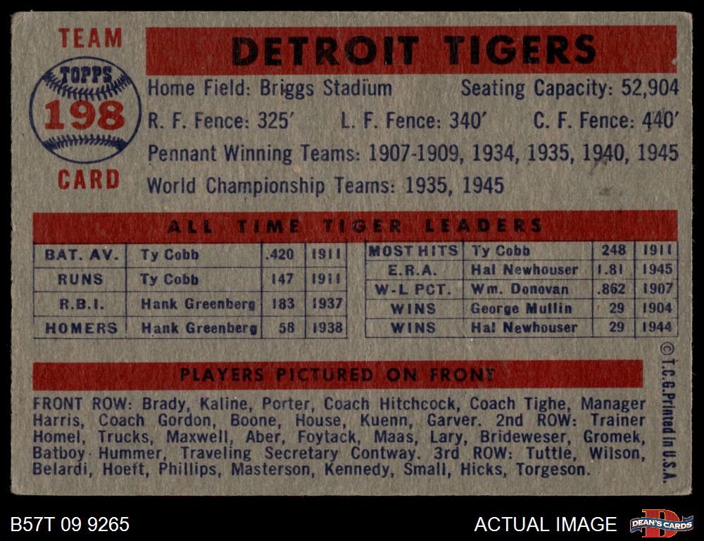 1957 Topps #198 Tigers Team 1.5 - FAIR