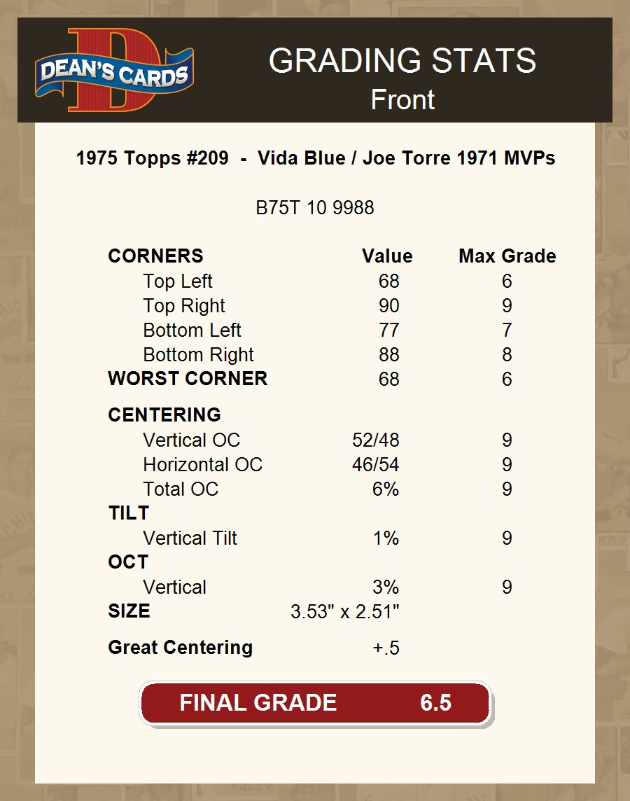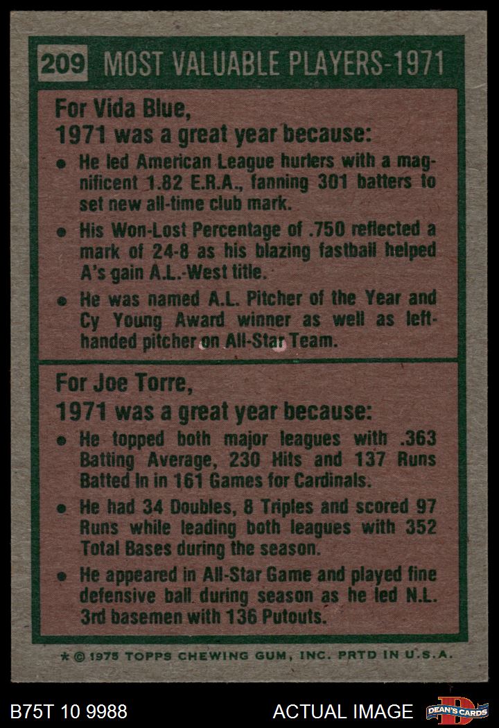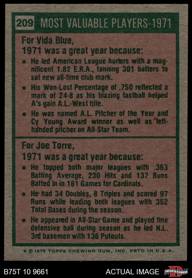 1975 Topps #209 - Vida Blue / Joe Torre 1971 MVPs 6.5 - EX/MT+
