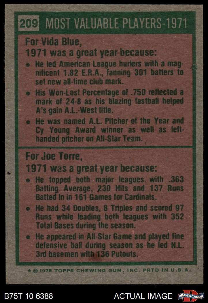 1975 1975 #209 - Vida Blue / Joe Torre 1971 MVPs 7 - NM