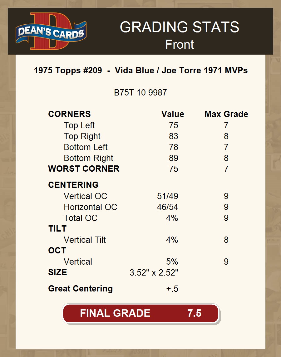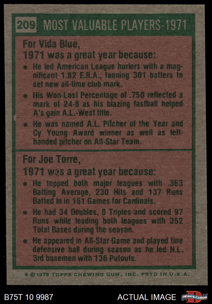 1975 Topps #209 - Vida Blue / Joe Torre 1971 MVPs 7.5 - NM+