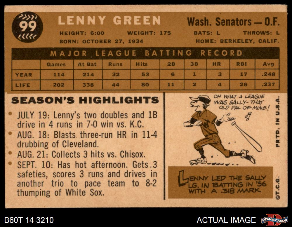 1960 Topps #99 Lenny Green 3.5 - VG+