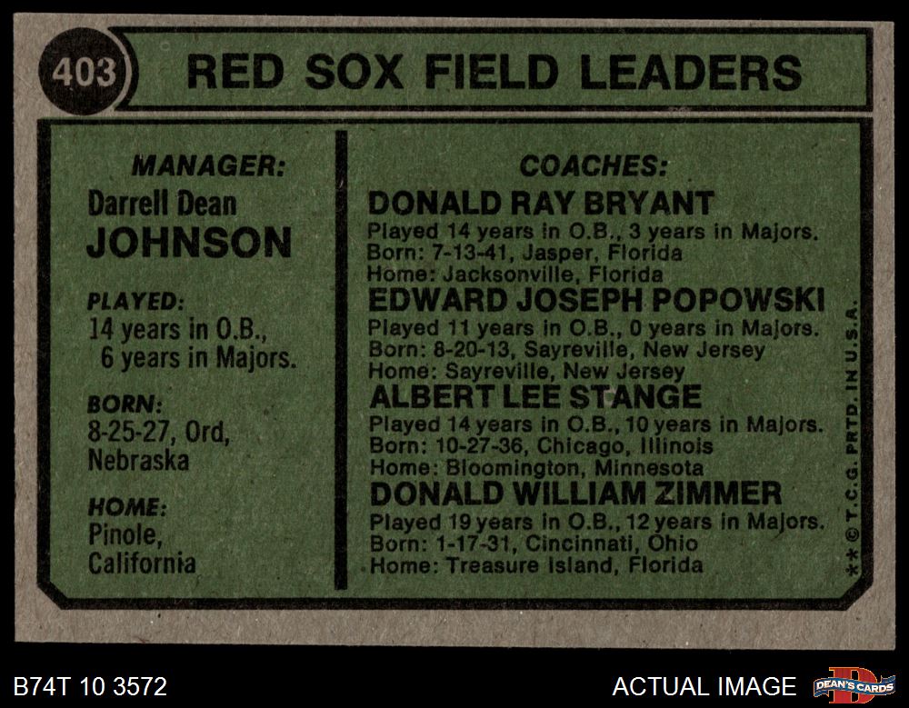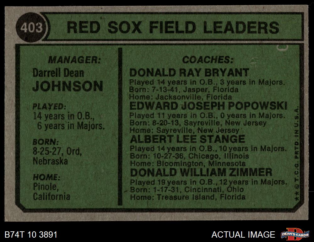 Darrell Johnson / Don Bryant / Eddie Popowski / Lee Stange / Don Zimmer (8 available)