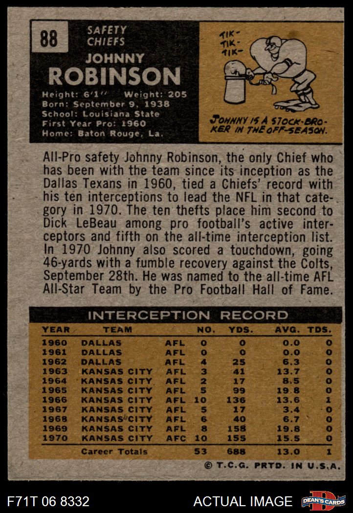 1971 Topps #88 Johnny Robinson Front Thumbnail