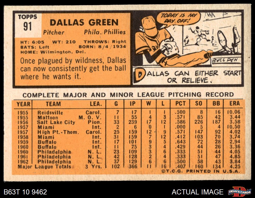 1963 Topps #91 Dallas Green 3.5 - VG+