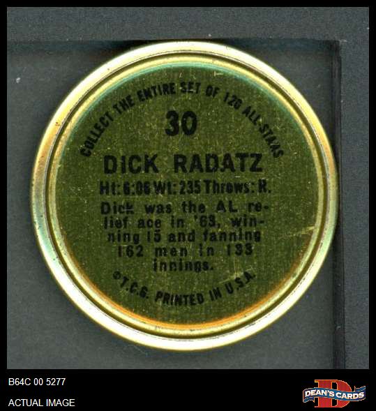 1964 Topps Coins #30 Dick Radatz 5 - EX