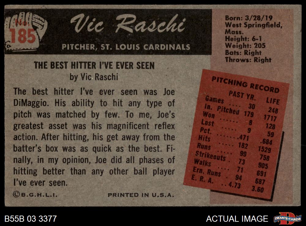 1955 Bowman #185 Vic Raschi Front Thumbnail