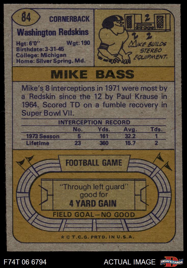 1974 Topps Football Cards (11,135 available)1974 Topps Redskins (424 available)