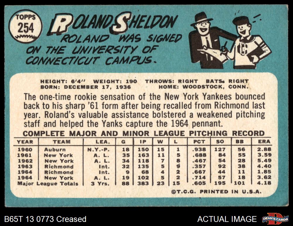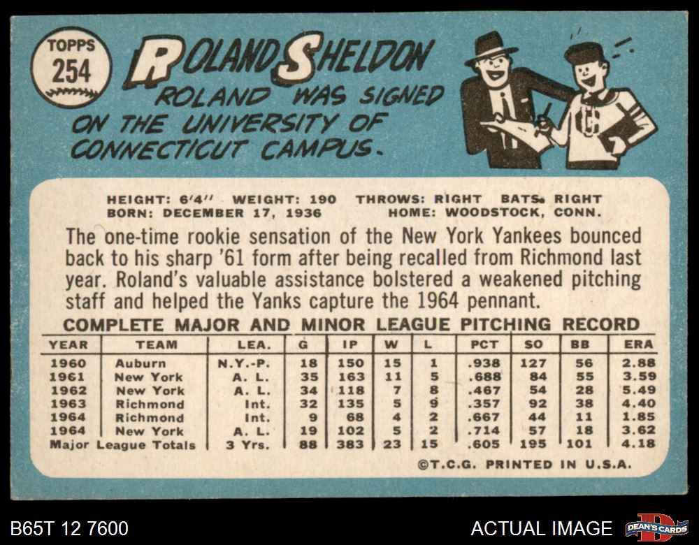 1965 Topps #254 Roland Sheldon