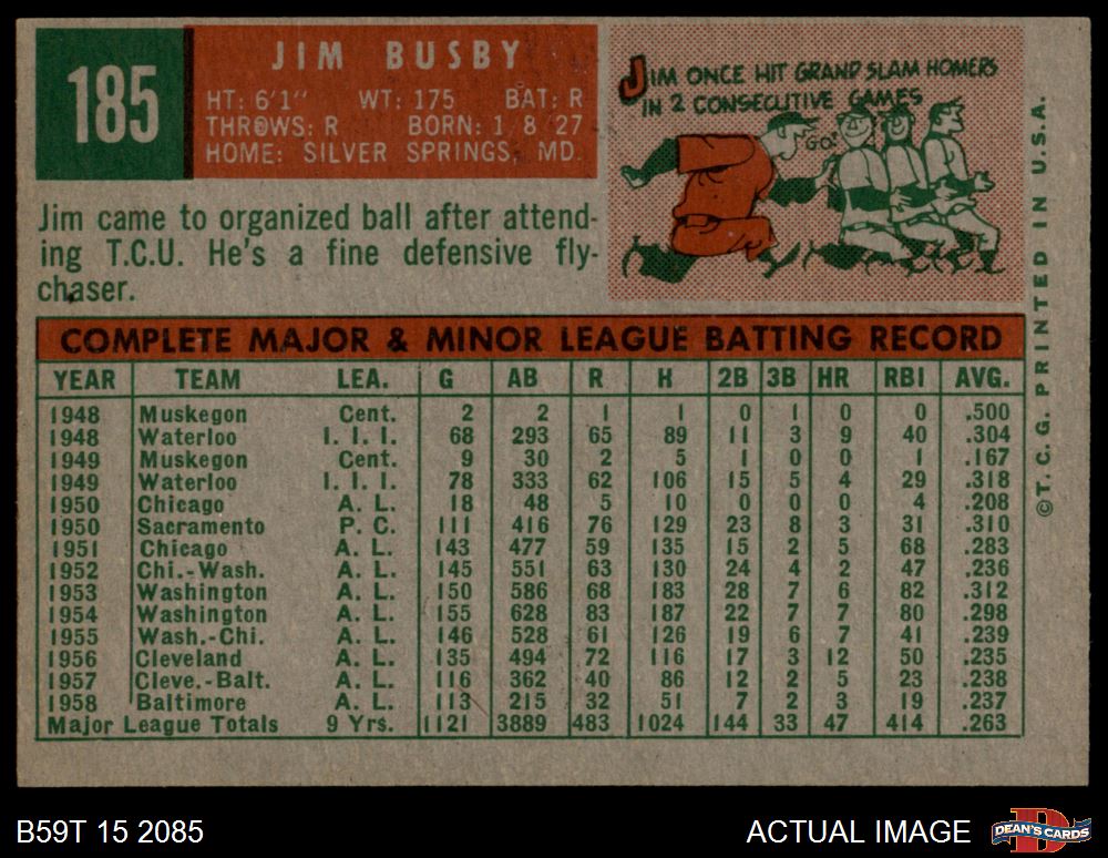 1959 Topps #185 Jim Busby