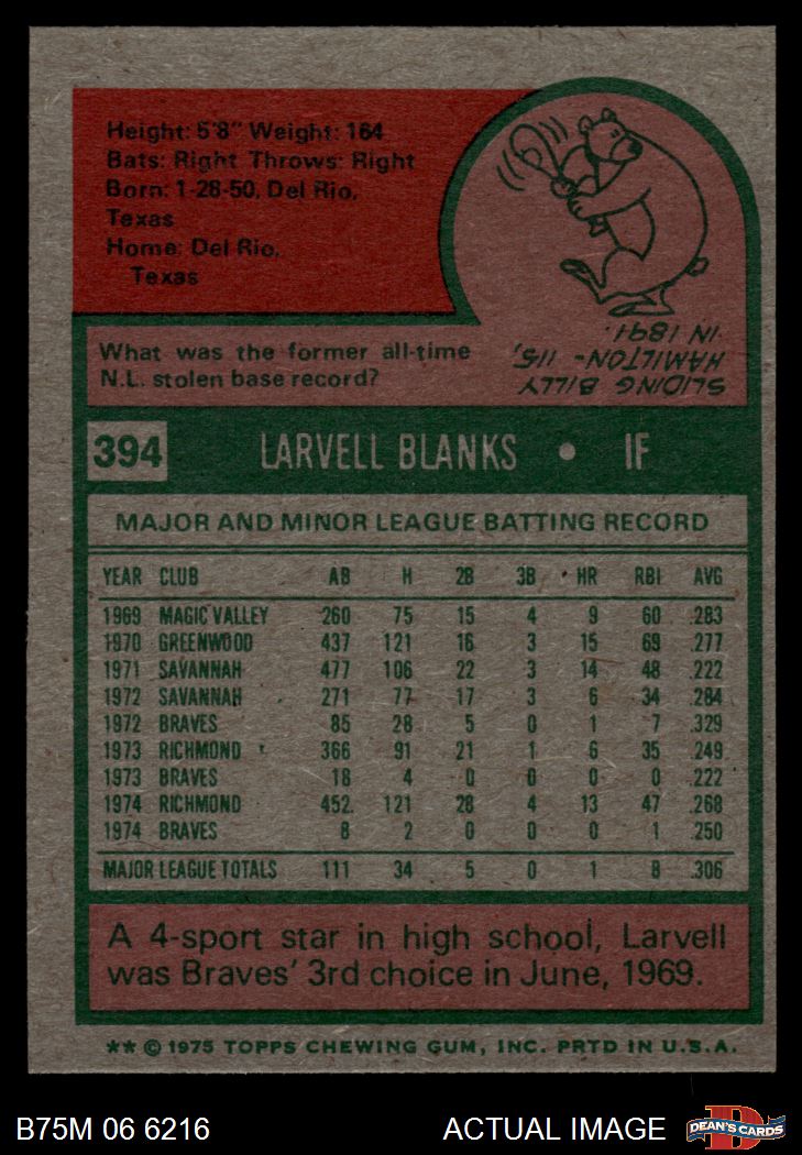 1975 Topps Mini #394 Larvell Blanks