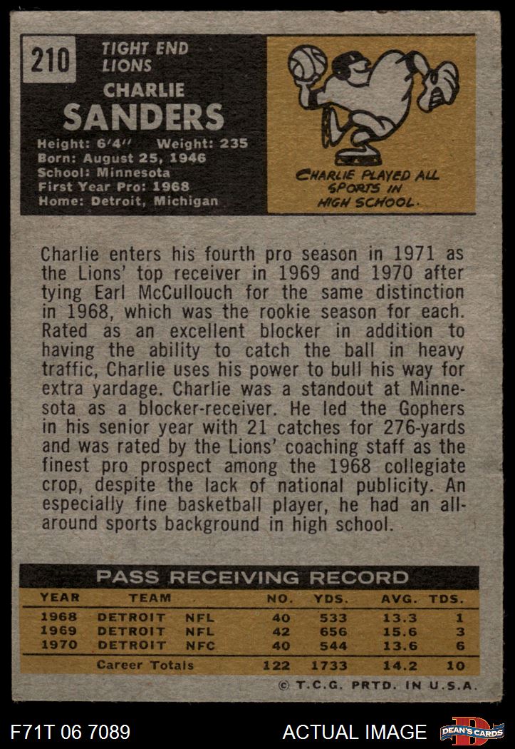 1971 Topps #210 Charlie Sanders 1.5 - FAIR