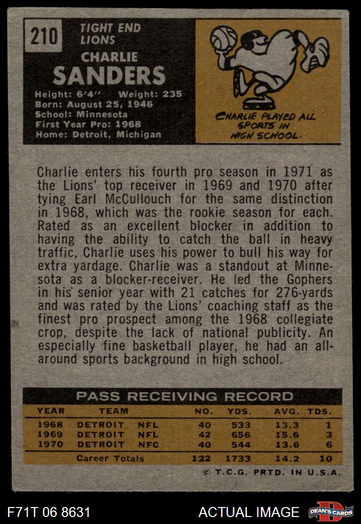 1971 Topps #210 Charlie Sanders 3 - VG