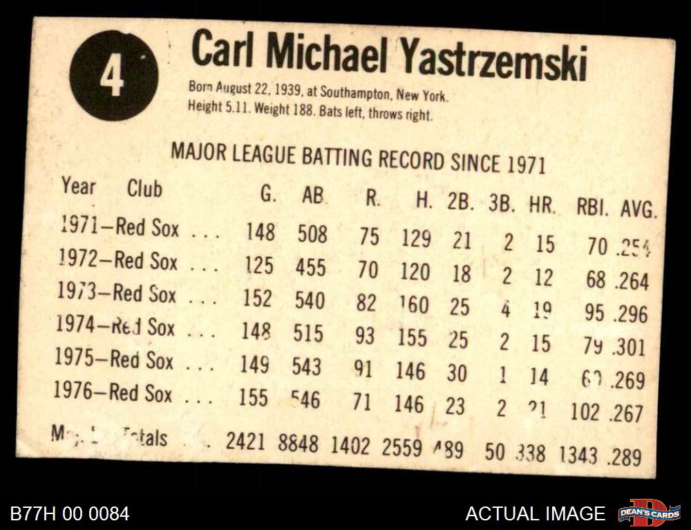 1977 Hostess #4 Carl Yastrzemski 2 - GOOD