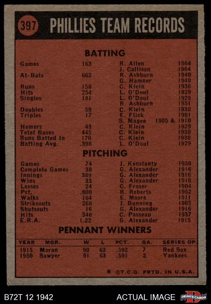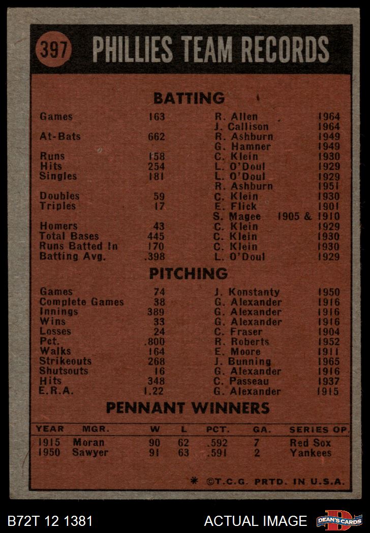 1972 Topps #397 Phillies Team 3 - VG