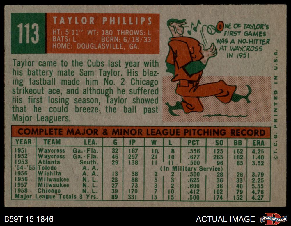 1959 Topps #113 Taylor Phillips 6 - EX/MT