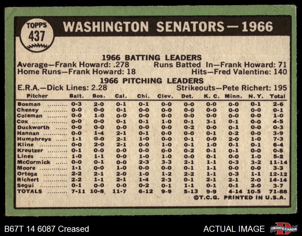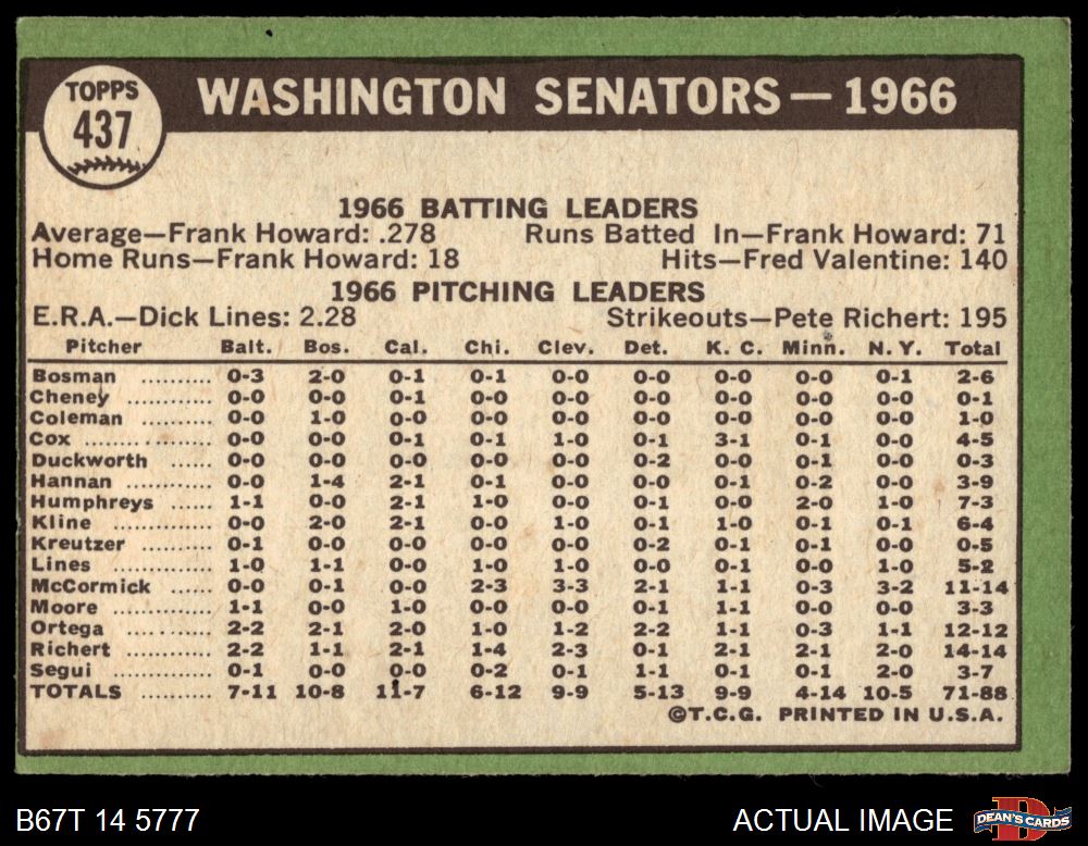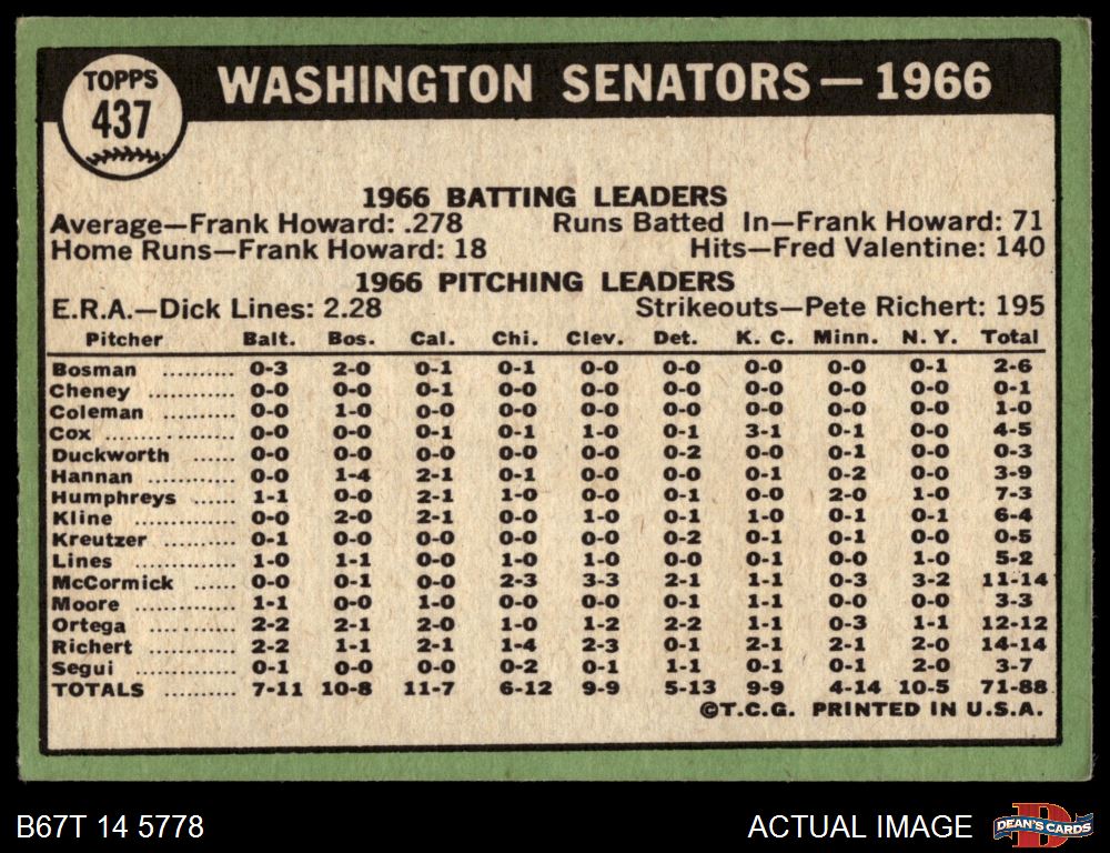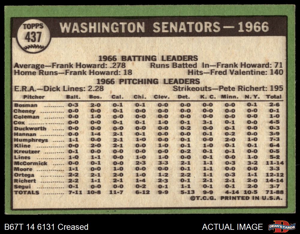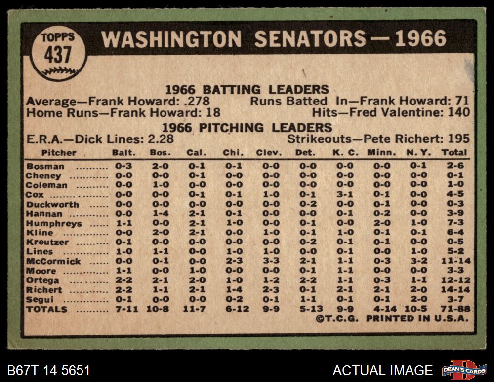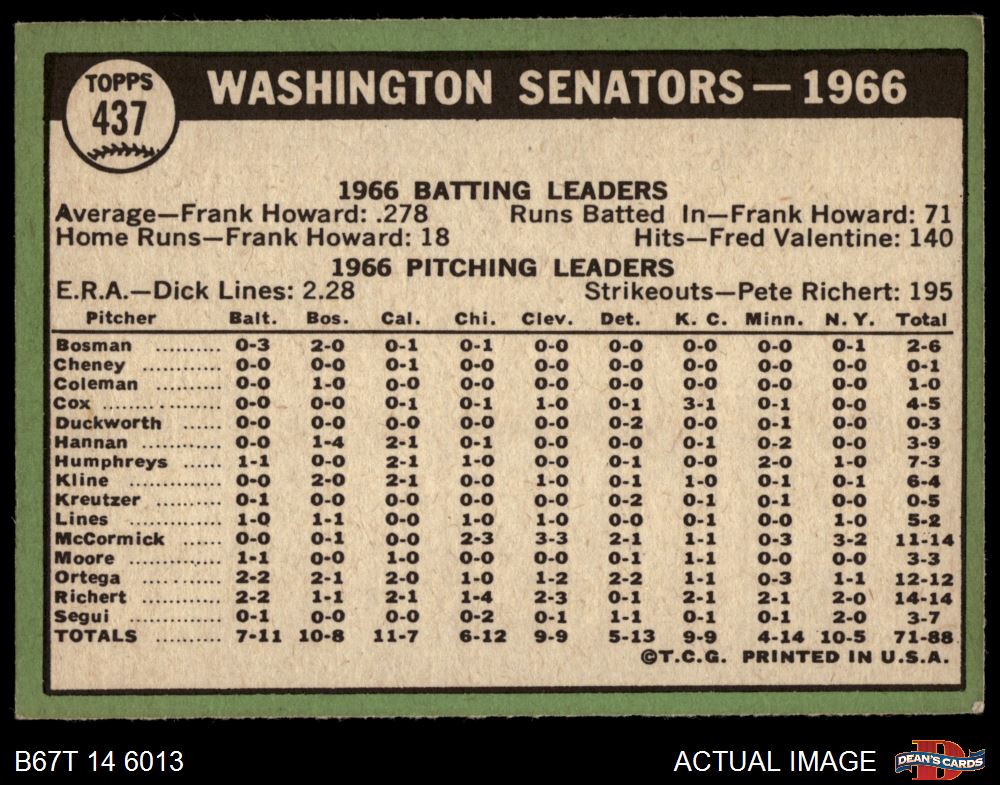 1967 Topps #437 Senators Team 3 - VG