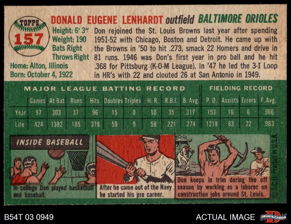1954 Topps #157 Don Lenhardt 4 - VG/EX