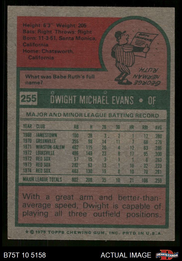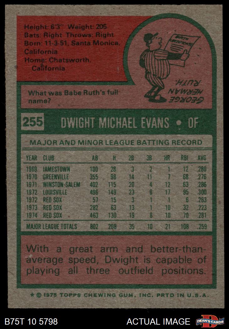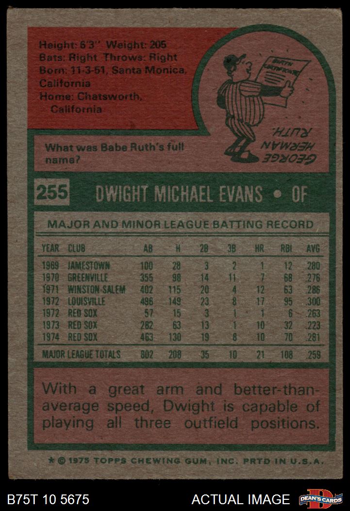 1975 Topps #255 Dwight Evans