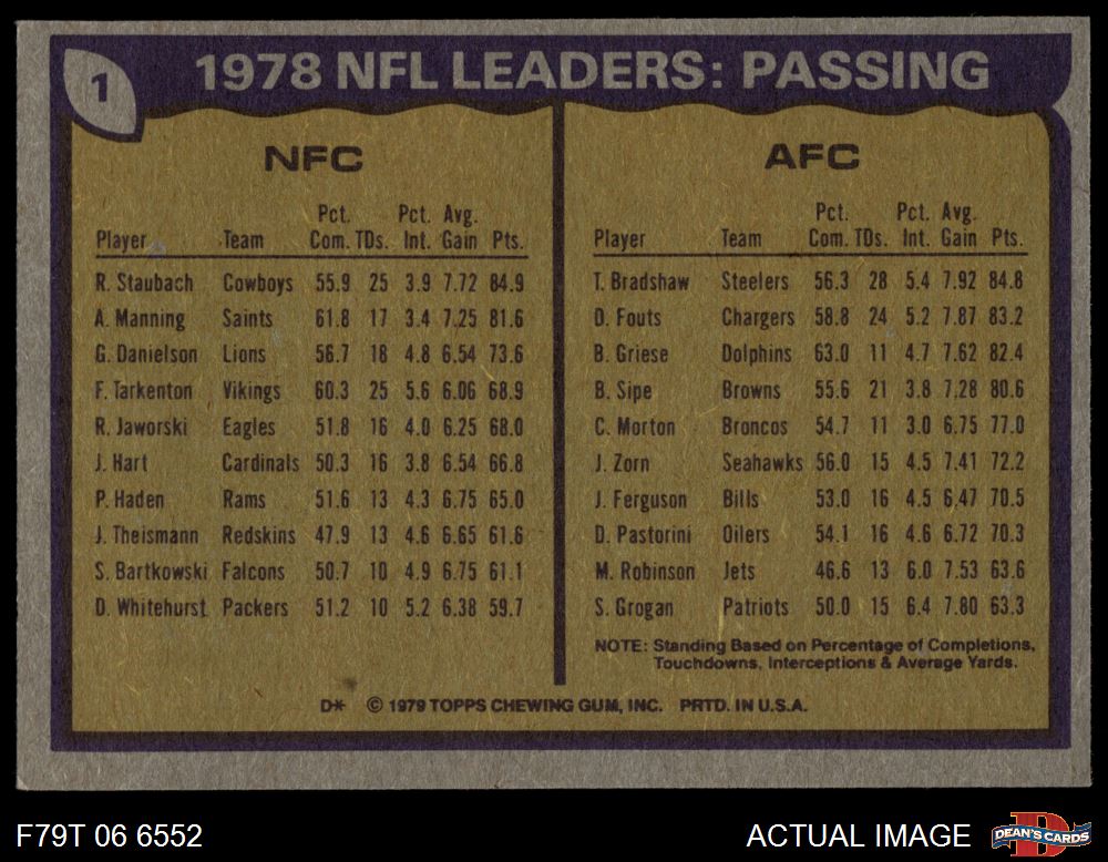 1979 Topps #1 - Roger Staubach / Terry Bradshaw Passing Leaders 5 - EX